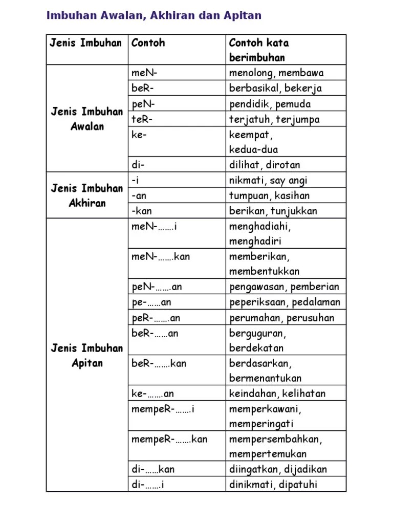 Bahasa Melayu Contoh Imbuhan Apitan - Imbuhan Sisipan Exercise. 103 golongan penggandaan penuh penggandaan penggandaan penggandaan kata separa berentak semu kata (i) kata dasar (i) kata (i) pengulangan adjektif contoh: Menjadikan lebih/bertambah mereka sedang memperluas padang. Uktuk bergabung dengan kata dassar yang bermula dengan huruf p, f dan perkataan pinjaman yang bermula dengan huruf b dan v contoh : Untuk bergabung dengan kata dasar yang bermula dengan huruf c, d, j, sy dan z.